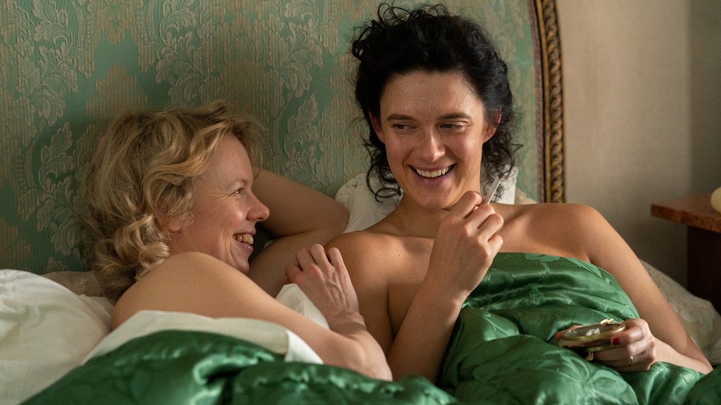 “There is a noted dedication to showing the physicality of their love, with hands pawing at backs when they don’t yet want to part, sleepily toying with a lover’s bangs in the morning, and untying the straps of a dress, that makes their love feel tactile. The frequent scenes of intimacy never feel made for male consumption, with unobtrusive ways to avoid nudity, and body hair, that only serves as further evidence to call Tove an example of the female gaze.” (Tove/ Cinema Etc. 09/2020)