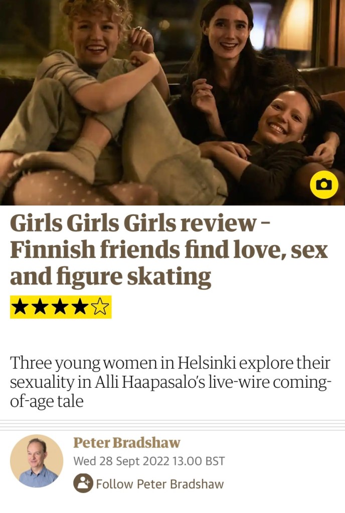 Girls Girls Girls (UK title for Girl Picture) had its UK launch at the end of September. The Guardian wrote a smashing review here of this European modern film with “…such a vivid, lovable triple-decker performance from Milonoff, Kauhanen and Leino”.