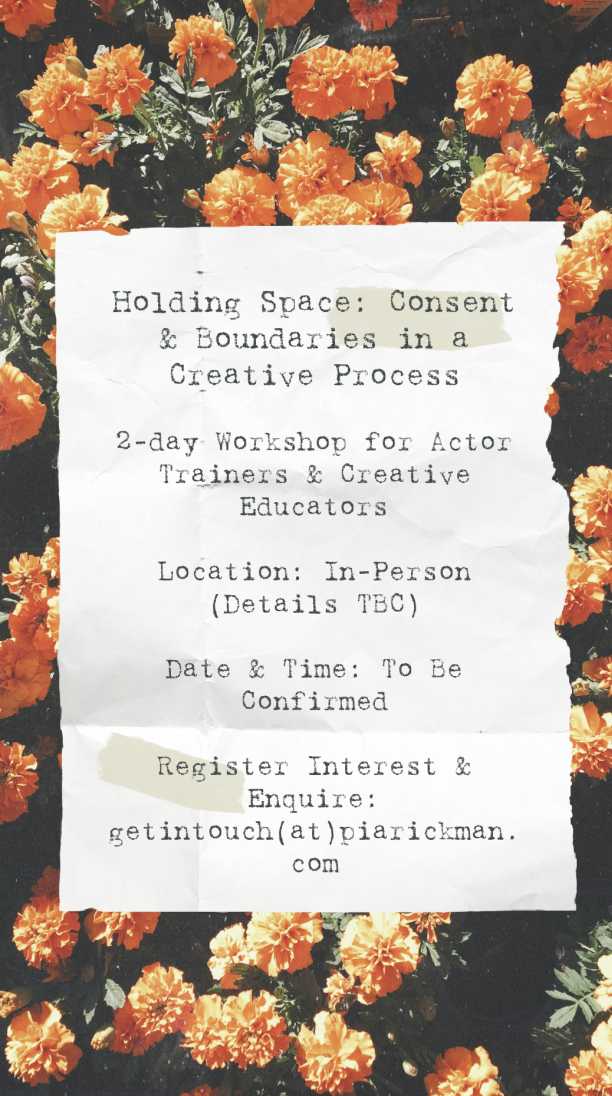 - Holding Space: Consent & Boundaries in a Creative Process Workshop for Actor Trainers & Creative Educators