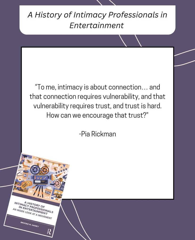 A History of Intimacy Professionals in Entertainment is out now! In this book, Brooke M. Haney explores the evolution of intimacy coordinators, choreographers and directors in the performing arts, highlighting the history of their critical role in fostering safe(r) and respectful environments on set and in theatres. Pia’s interview can be found in chapter 17.