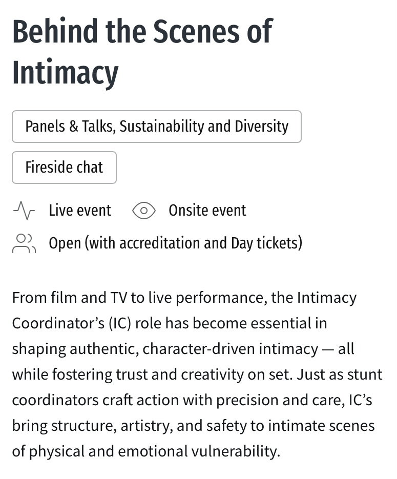 - Working with Intimacy: Best Practice for Productions Workshop for Directors & Producers